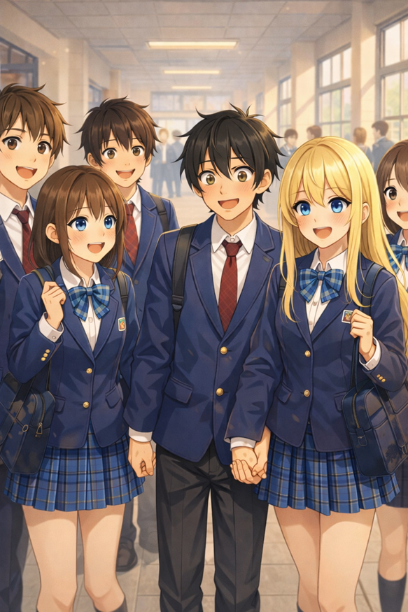 Bianca apareceu no corredor passando pela porta da 2C, com aquele brilho de quem está começando o 1º ano e ainda acredita que vai ser “tranquilo”. Ela ia procurar a própria sala, mas parou quando viu Ren.